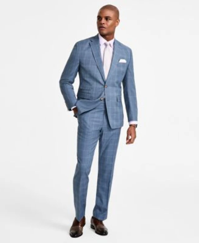 Tayion Collection Mens Classic Fit Blue Plaid Suit Separates