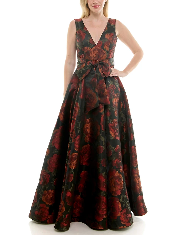 Taylor Women's Printed Pleated Tiered Sleeveless Gown