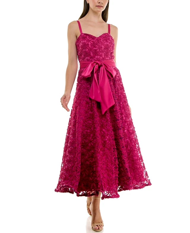 Taylor Women's Floral-Trim Bow-Waist Midi Dress