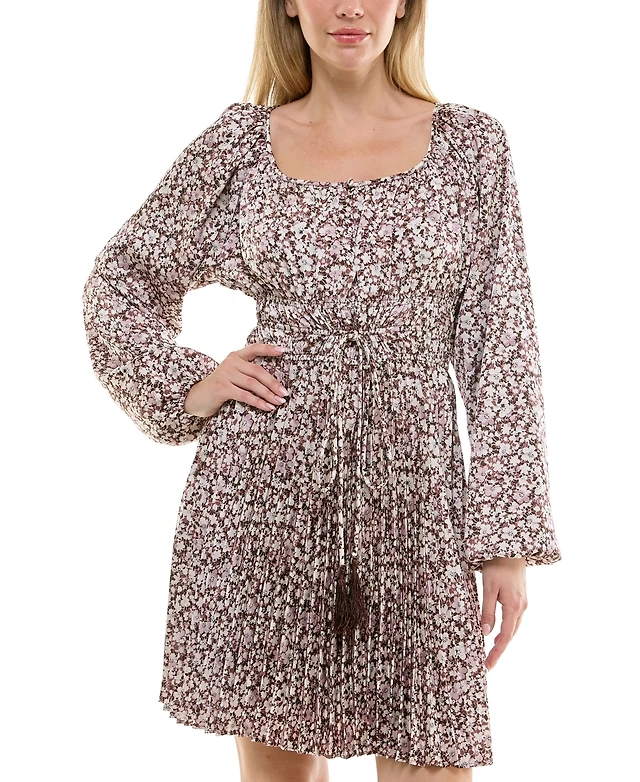 Taylor Women's Pleated Long-Sleeve A-Line Dress