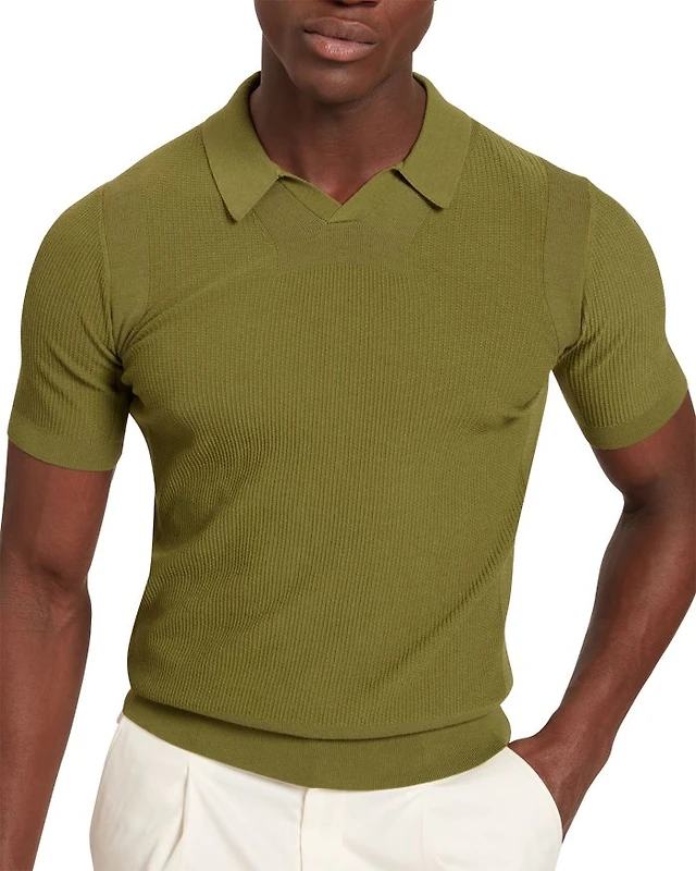Aindrea Textured Rib Open Neck Knitted Polo Shirt
