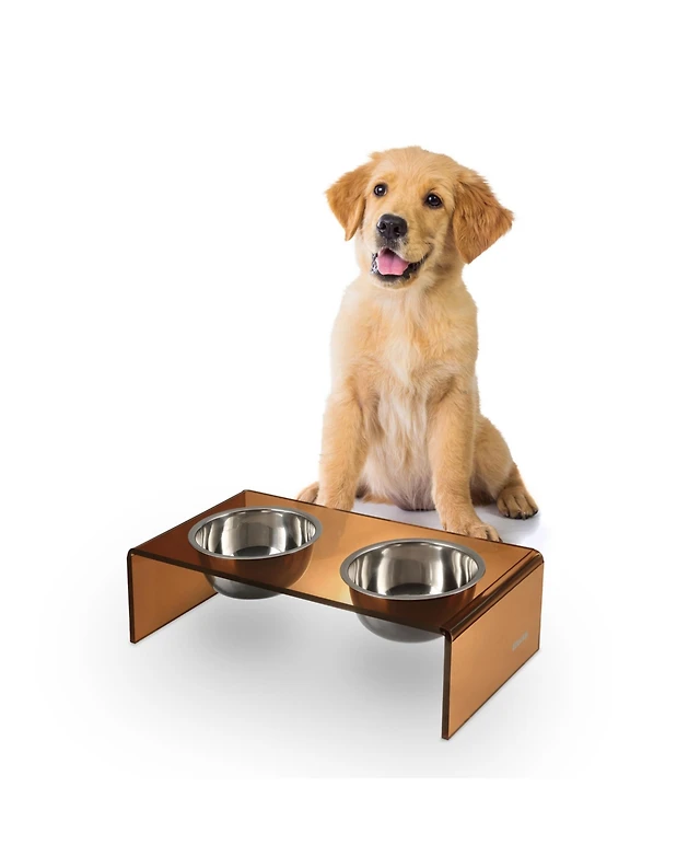 Keaton Modern Acrylic Rectangular Elevated Pet Feeder with 2-Stainless Steel Bowls