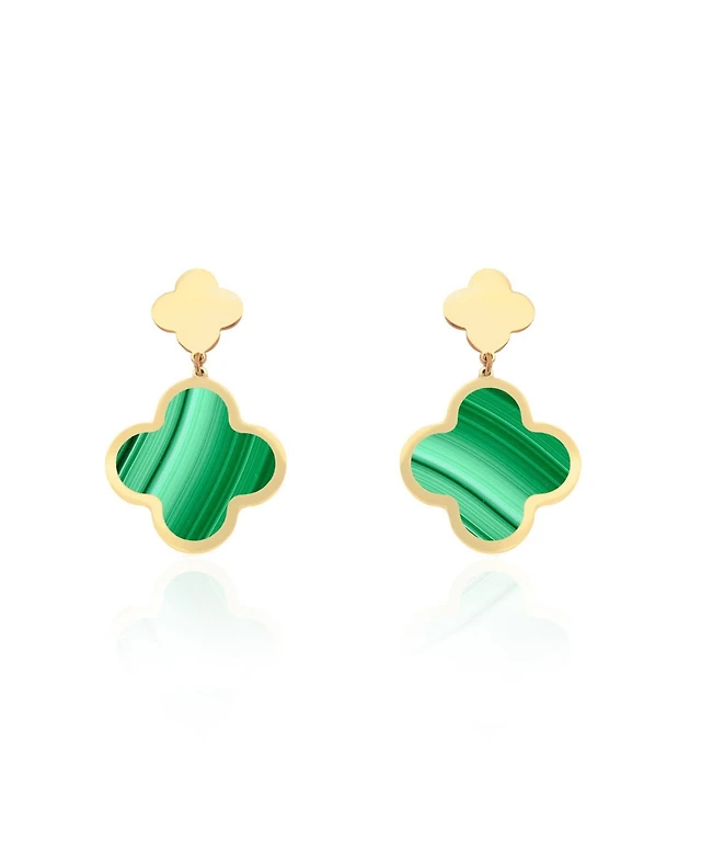 The Lovery Large Malachite Clover Necklace 14K Gold