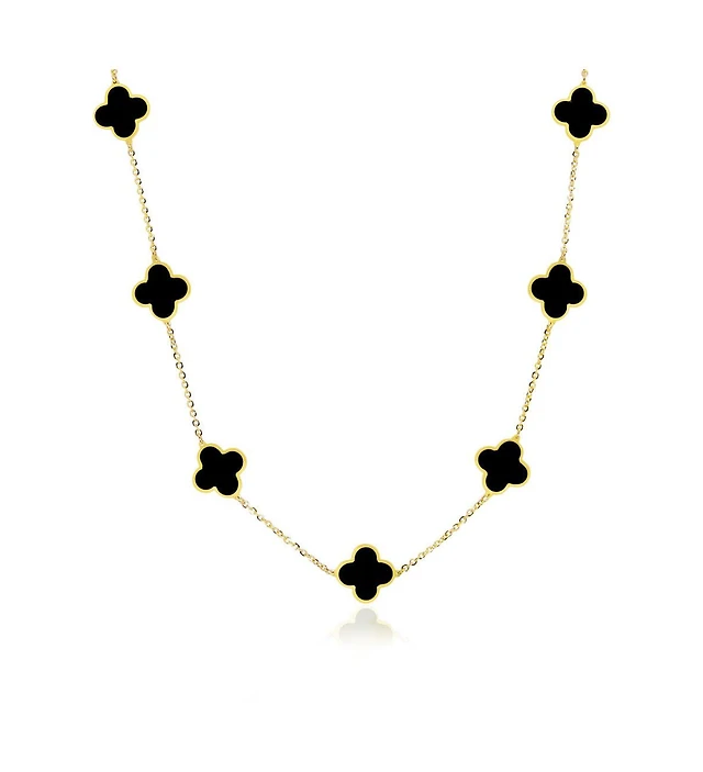 The Lovery Mini Onyx Clover Necklace 14K Gold