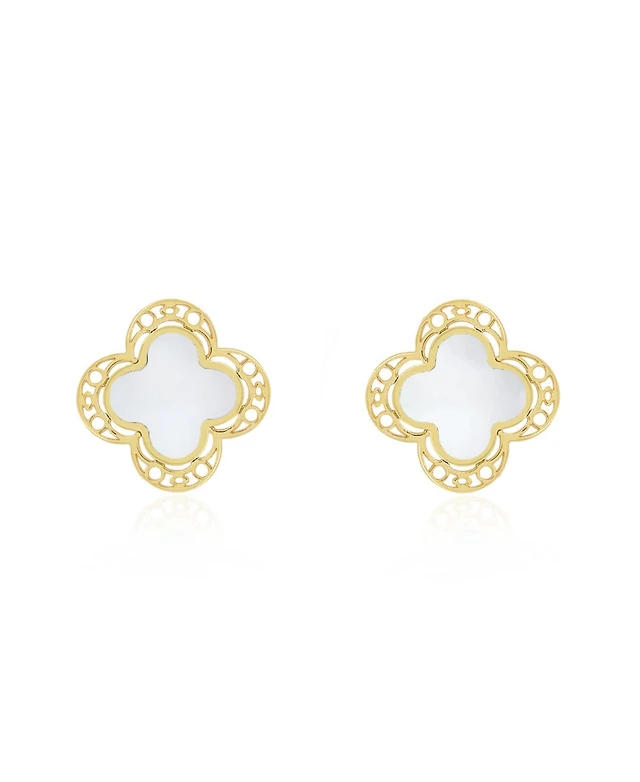 The Lovery Blue Enamel Four Leaf Clover Stud Earrings 14K Gold