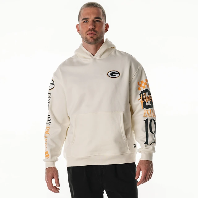 Unisex The Wild Collective Cream Green Bay Packers Stacked Graphic Sleeve Fleece Hoodie