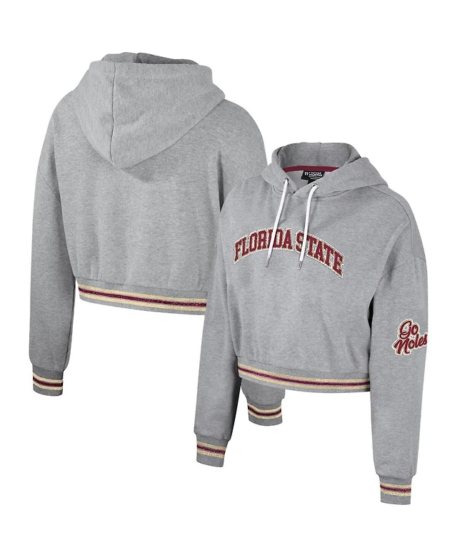 Women's The Wild Collective Heather Gray Distressed Florida State Seminoles Cropped Shimmer Pullover Hoodie