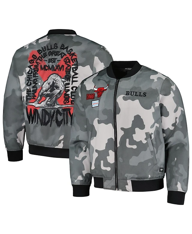 Men's and Women's The Wild Collective Gray Chicago Bulls 2023/24 City Edition Camo Bomber Full-Zip Jacket