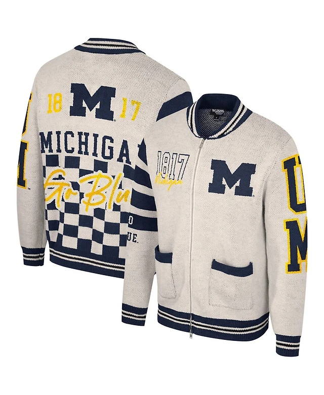 Men's and Women's The Wild Collective Cream Michigan Wolverines Jacquard Full-Zip Sweater