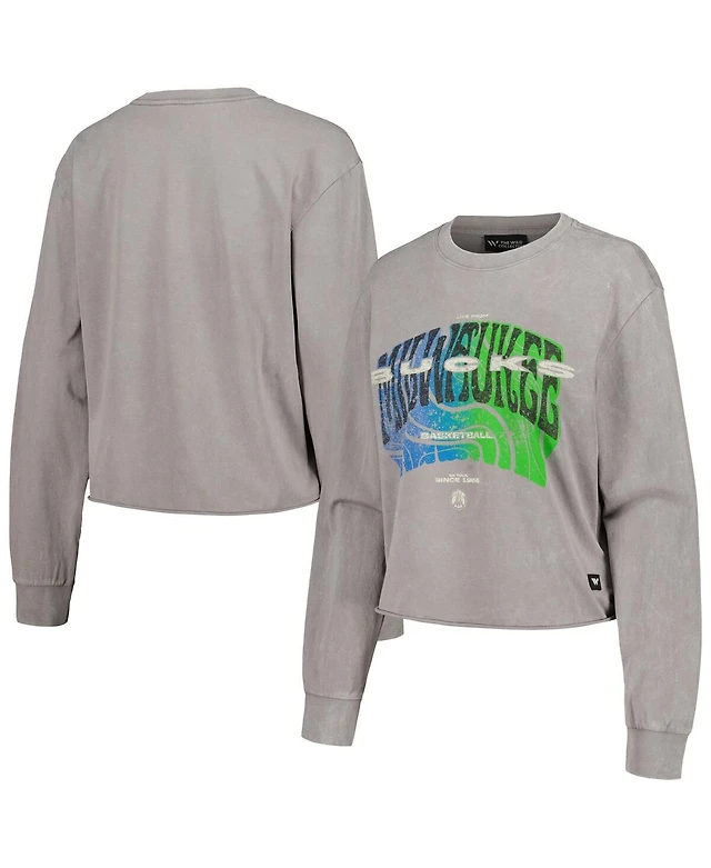 Women's The Wild Collective Gray Distressed Milwaukee Bucks Band Cropped Long Sleeve T-shirt