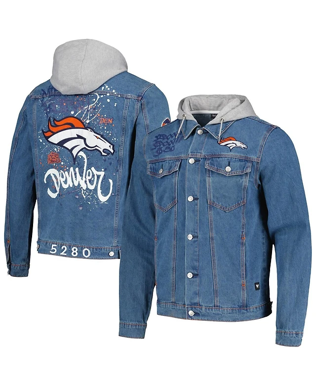 Men's The Wild Collective Denim Denver Broncos Hooded Full-Button Denim Jacket