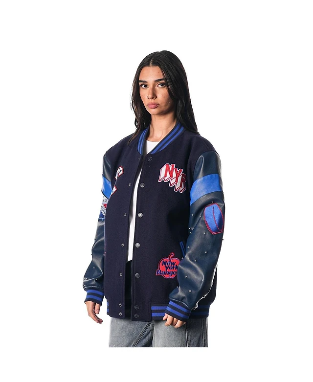 The Wild Collective Women's Blue New York Rangers Full-Snap Varsity Jacket