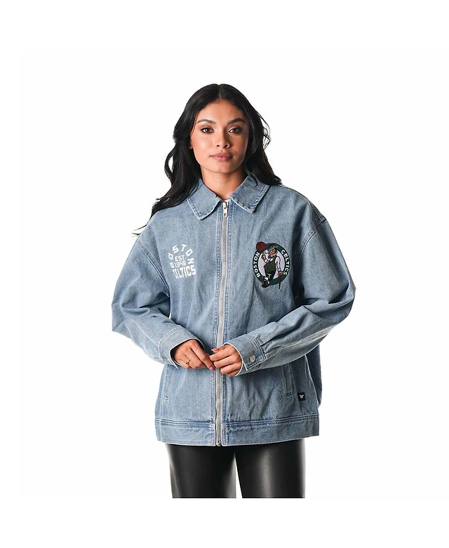The Wild Collective Men's and Women's Blue Boston Celtics Coaches Full-Zip Denim Jacket