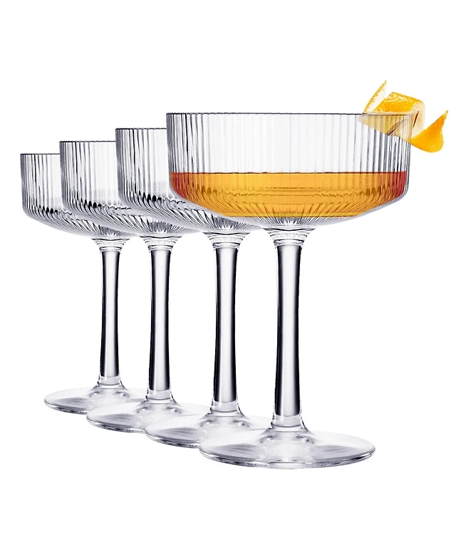 The Wine Savant Art Deco Vintage Ribbed Coupe Glasses, Set of 2
