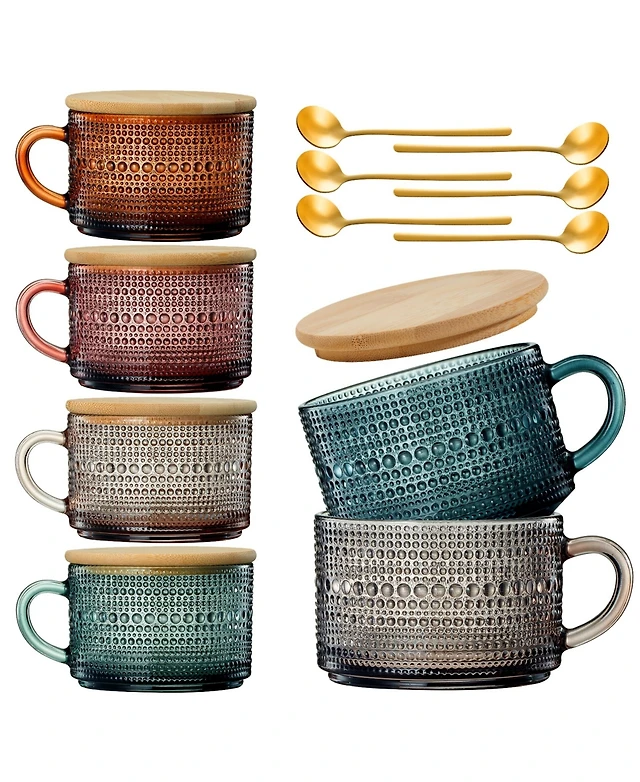 The Wine Savant Vintage Glass Coffee Mugs With Handles, Spoons Lid, Set of 6