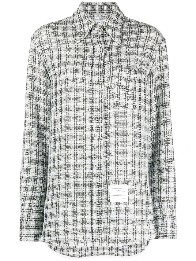 THOM BROWNE - 4-Bar Button Down Shirt in Grey Cotton Flannel