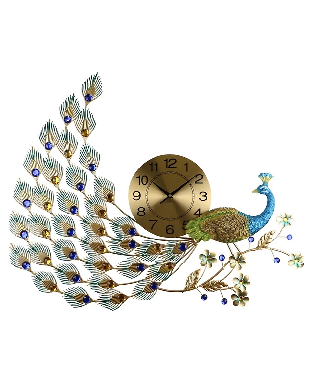 Three Star Peacock Metal Wall Clock