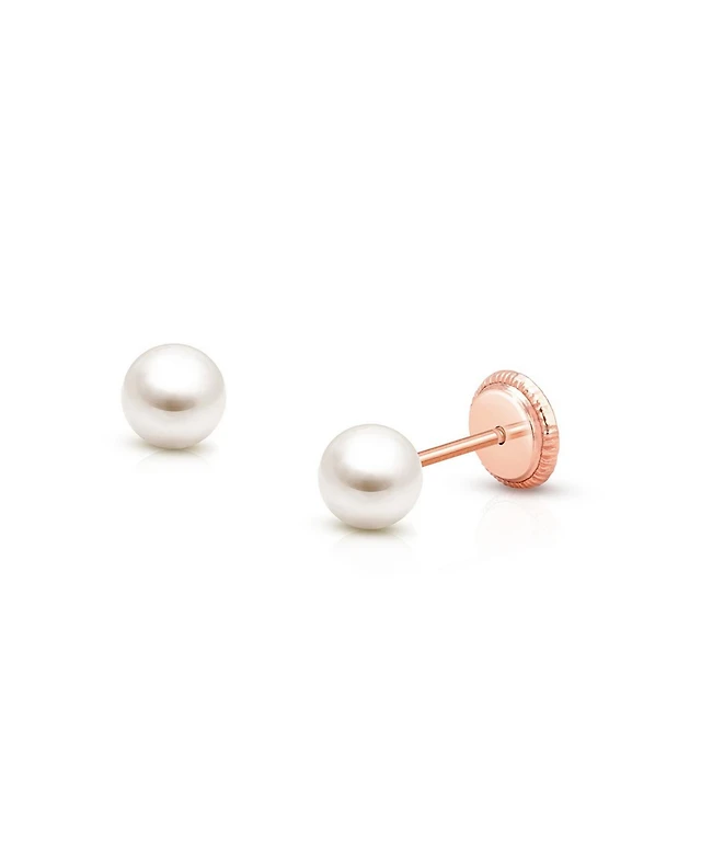 Tiny Blessings Children's 14K Gold 4mm Pearl Studs Girls' Screw Back Earrings