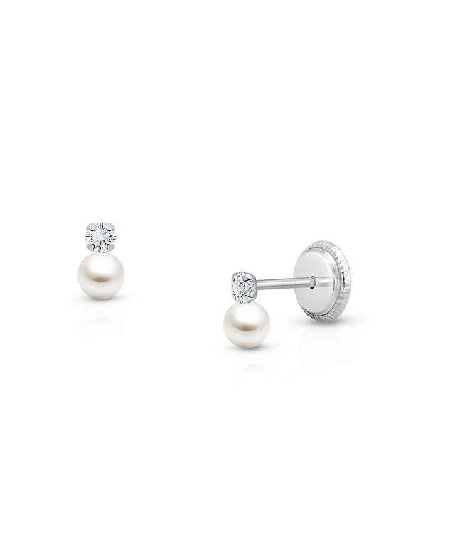 Tiny Blessings Children's 14K Gold 3mm Pearl Drop Studs Girls' Screw Back Earrings