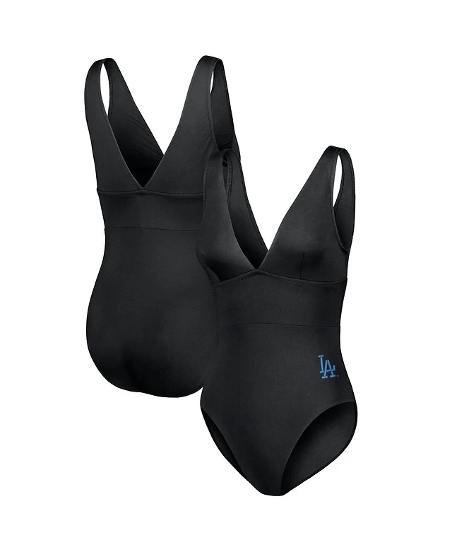 Tommy Bahama Women's Black Los Angeles Dodgers Palm Modern V-Neck One-Piece Swimsuit