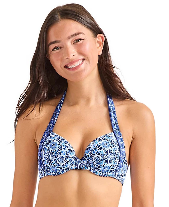 Tommy Bahama Women's Blue/White Detroit Lions Rugby Beach Stripe Button-Up Tunic
