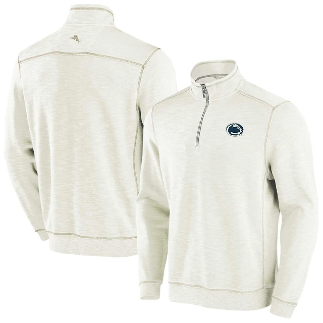 Men's Tommy Bahama Cream Penn State Nittany Lions Tobago Bay Half-Zip Tri-Blend Top