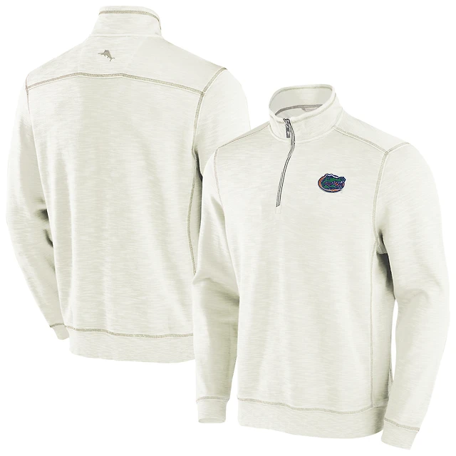 Men's Tommy Bahama Cream Florida Gators Tobago Bay Half-Zip Tri-Blend Top