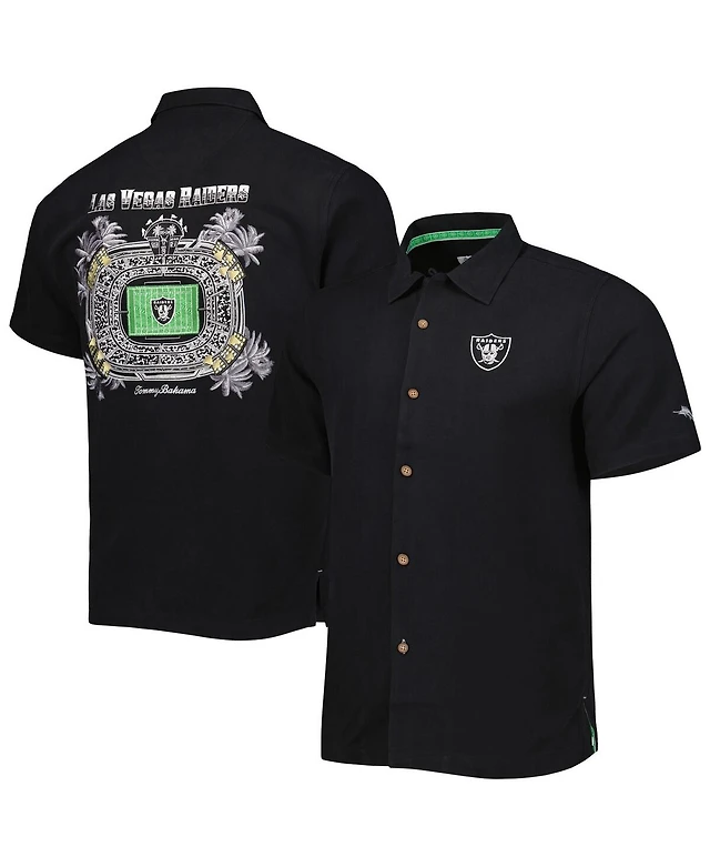 Men's Tommy Bahama Black Las Vegas Raiders Top of Your Game Camp Button-Up Shirt