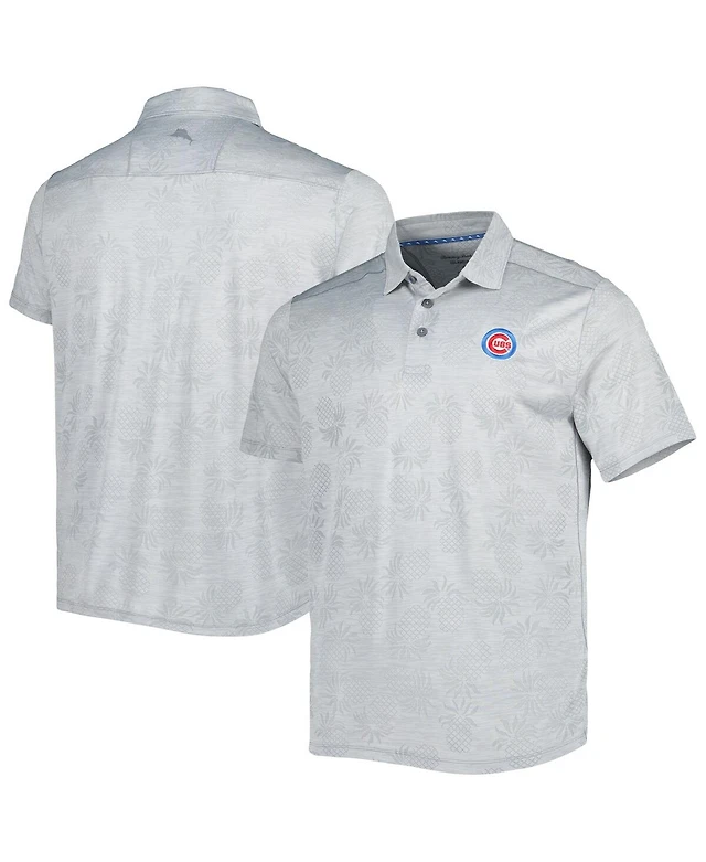Men's Tommy Bahama Gray Chicago Cubs IslandZone Pineapple Palm Coast Polo Shirt