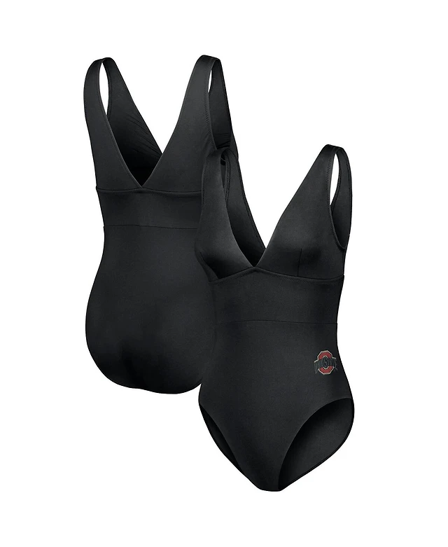 Tommy Bahama Women's Black Ohio State Buckeyes Palm Modern V-Neck One-Piece Swimsuit