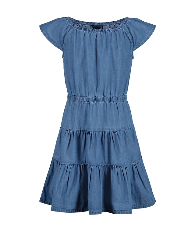 Tommy Hilfiger Toddler and Little Girls Denim Tiered Flutter Sleeve Dress