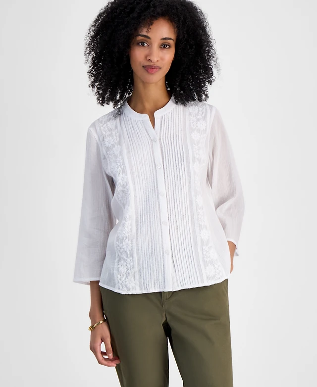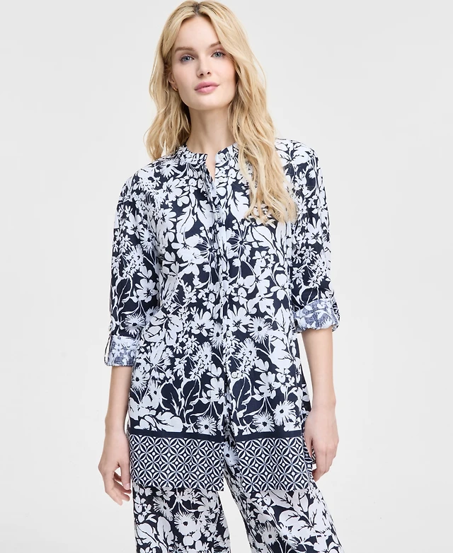 Tommy Hilfiger Women's Printed Point Collar Puff-Sleeve Blouse