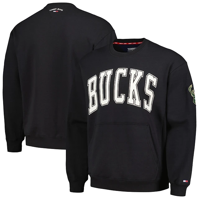 Men's Tommy Jeans Black Milwaukee Bucks Henry Pullover Sweatshirt
