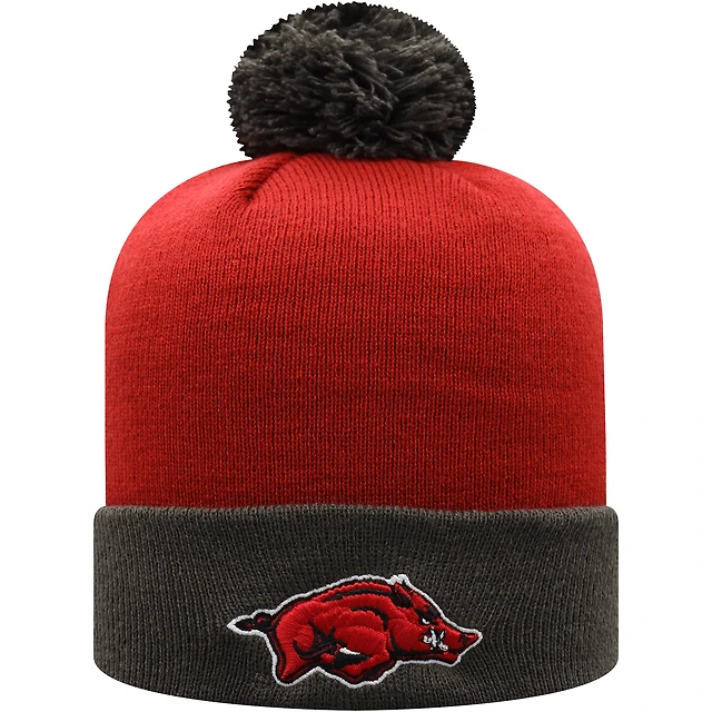 Men's Top of the World Cardinal/Black Arkansas Razorbacks Core 2-Tone Cuffed Knit Hat with Pom