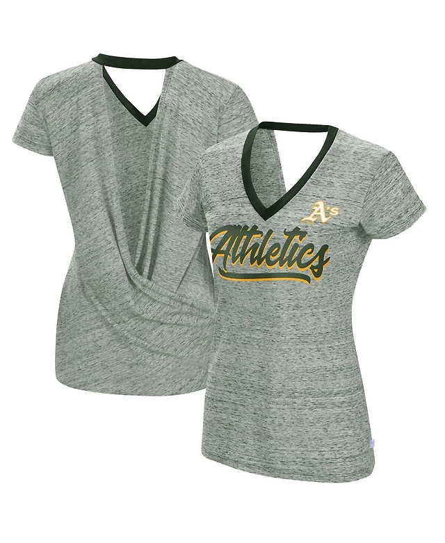 Women's Touch Green Oakland Athletics Hail Mary Back Wrap Space-Dye V-Neck T-shirt
