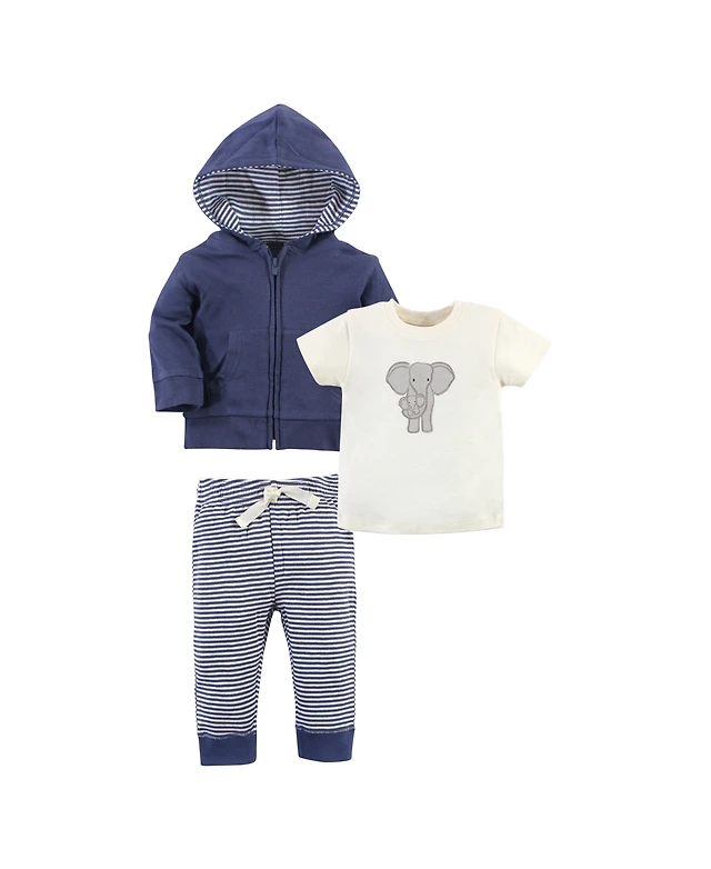 Touched by Nature Baby Boys Unisex Versatile Natural Cotton Collection Hoodie, Tee or Bodysuit, & Coordinated Pants