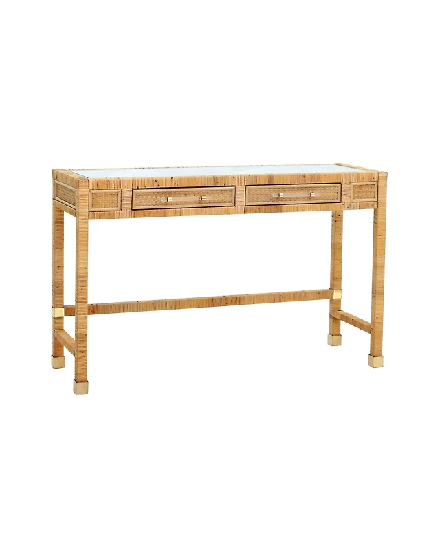 Tov Furniture 1 Piece Rattan Brass-Capped Legs Bench