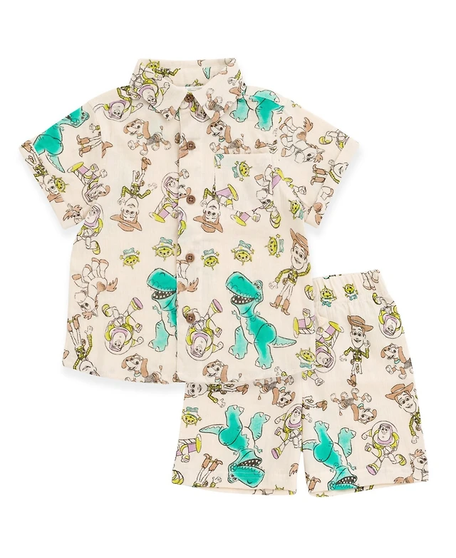 Toy Story Toddler Boys Disney Cotton Gauze Matching Family Button Down Shirt Shorts Outfit Set