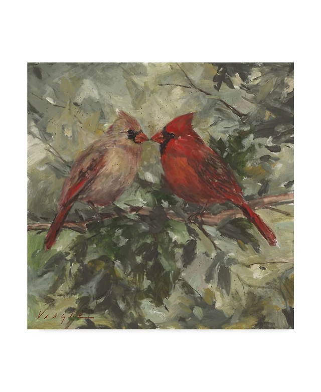 Mary Miller Veazie 'Kissing Cardinals' Canvas Art - 35" x 35"