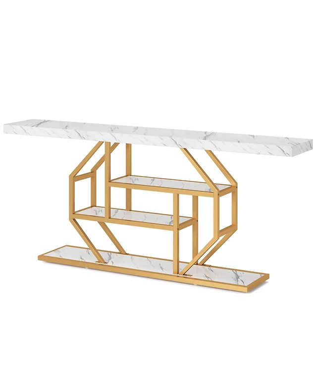 Tribesigns Gold Console Table, 55.11 inch Faux Marble Entryway Table Narrow Long Sofa Table, Modern Accent Table for Living Room, Entrance Table Geome