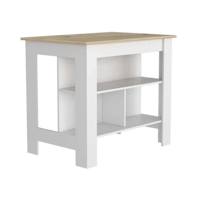 Tuhome Cala Kitchen Island White / Light Oak Mdf