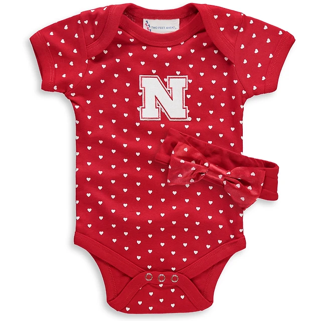 Girls Newborn & Infant Scarlet Nebraska Huskers Hearts Bodysuit and Headband Set