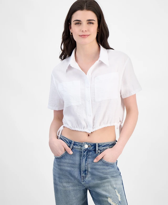 Ultra Flirt Juniors' Button-Front Collared Short-Sleeve Top