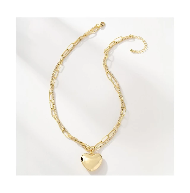 14K Gold-Plated Full Heart Necklace, 14"-16"