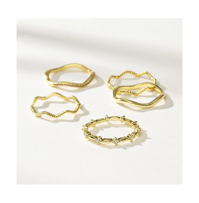 14k Gold-Plated, Cubic Zirconia Vintage 5 Layered Ring Set, Set of