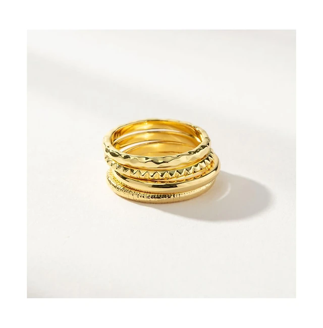 14K Gold-Plated Textured Ring Stack (Set of 4)