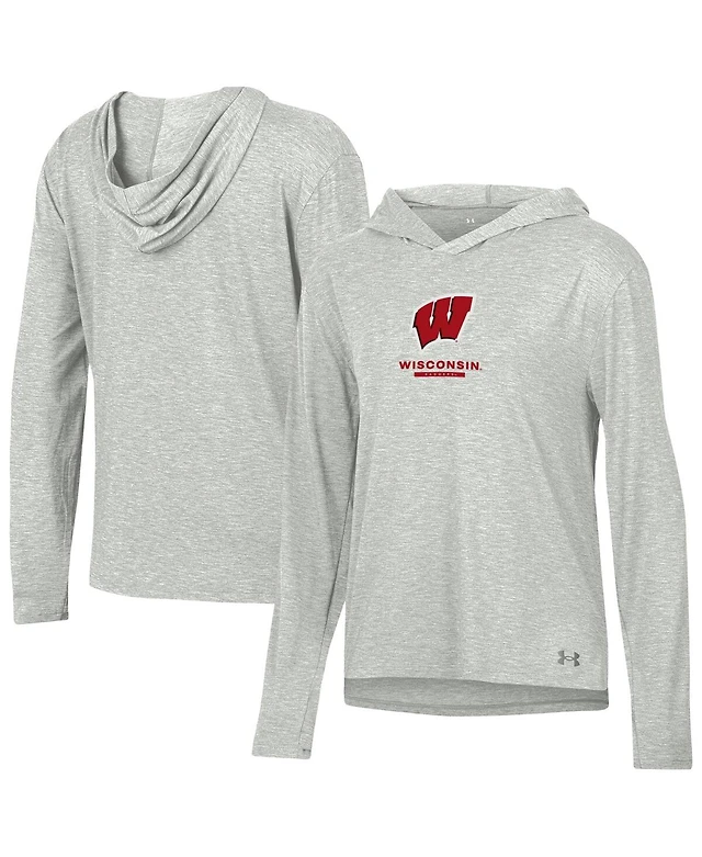 Under Armour Women's Heather Gray Wisconsin Badgers Tri-Blend Breezy Long Sleeve Hoodie T-Shirt