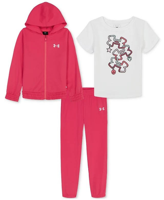 Under Armour Toddler and Little Girls 3-Piece Full Zip Hoodie, T-Shirt Pants Active Set
