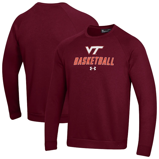 Men's Under Armour Maroon Virginia Tech Hokies Raglan Basketball Rival Fleece Pullover Sweatshirt