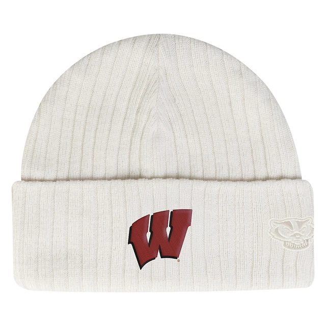 Men's Under Armour Stone Wisconsin Badgers Sideline Halftime Shallow Cuffed Knit Hat